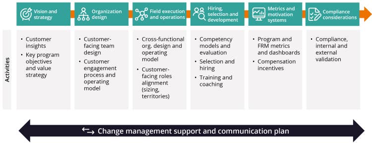 Our proposed framework (Figure 1) gives pharma companies a step-by-step approach to designing an FRM team, ensuring that they can provide the highest-quality support.