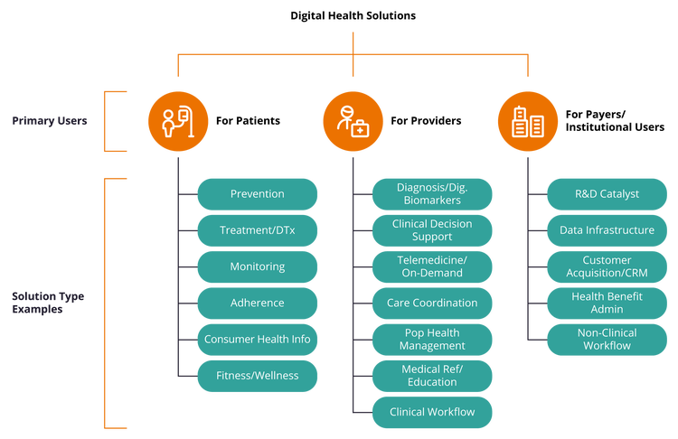 *Source: This classification is based on several available frameworks including the Classification of Digital Health Interventions v1.0 by the World Health Organization and the Digital Health Venture Database published by Rock Health.