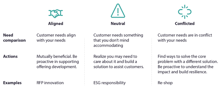 The assessment framework in Figure 1 provides a useful categorization for traveler needs and a method for understanding how to best respond. While justifying investment to support “aligned” needs is easy, hoteliers should consider meeting “neutral” needs they don’t mind accommodating but have outsized value to customers. Finally, hoteliers must proactively focus on understanding customer needs that directly conflict with their needs so they can preemptively identify strategies that mitigate the potential impact of the solutions provided by third parties.