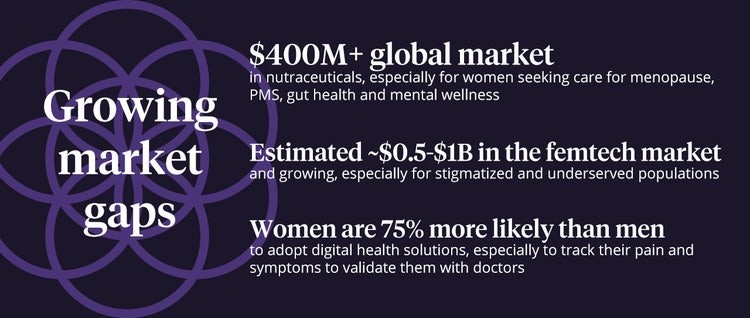 Only ~1% of healthcare research and innovation today is invested in female-specific conditions (beyond oncology).